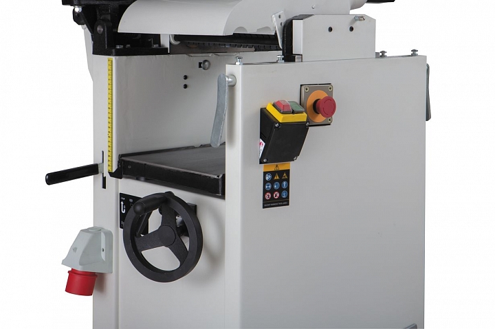 Для перехода от фугования к рейсмусованию достаточно поднять верхний модуль, состоящий из столов и рамы и переустановить кожух стружкоотсоса, сделанные ранее настройки при этом не сбиваются. Такая конструкция дает преимущества как в работе, так и при обслуживании станка.